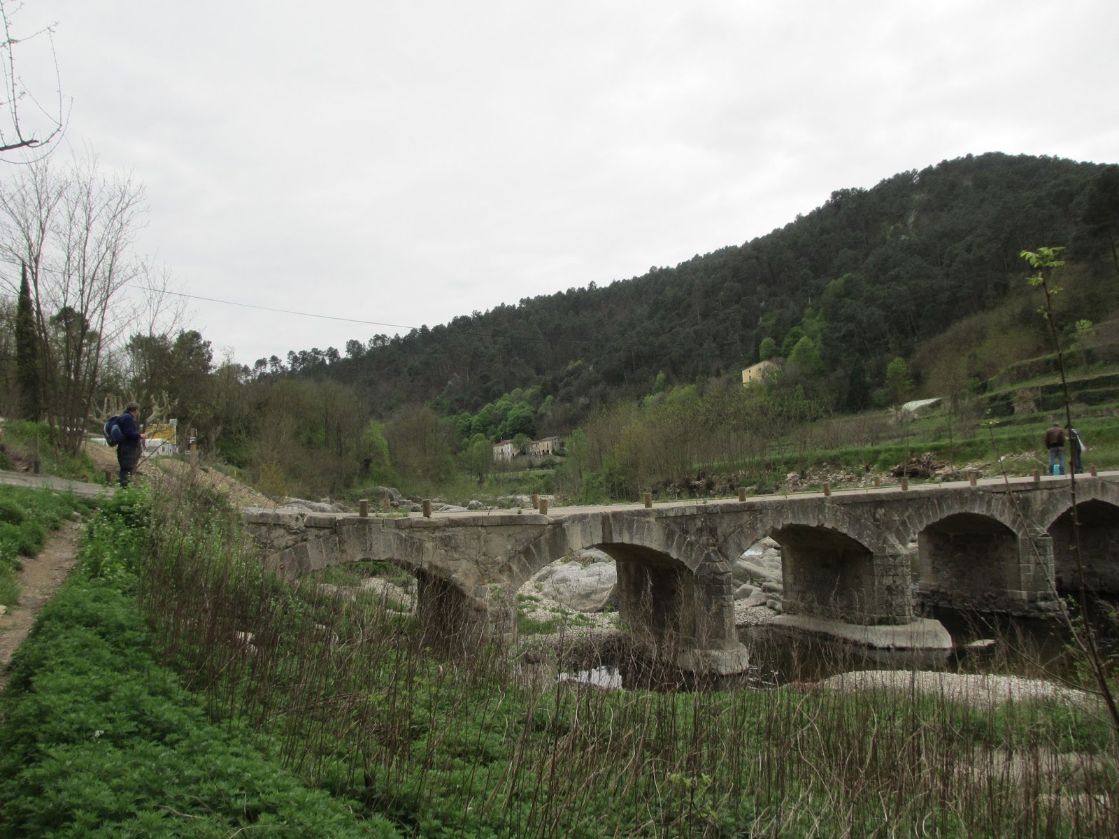We walked in indian file on the left hand side of the road for a km south of the town and then turned left across an historic bridge, then left again to follow a minor road/track running parallel to the N106 road and the former route of the metre gauge railway line to Florac across the Mimente River.